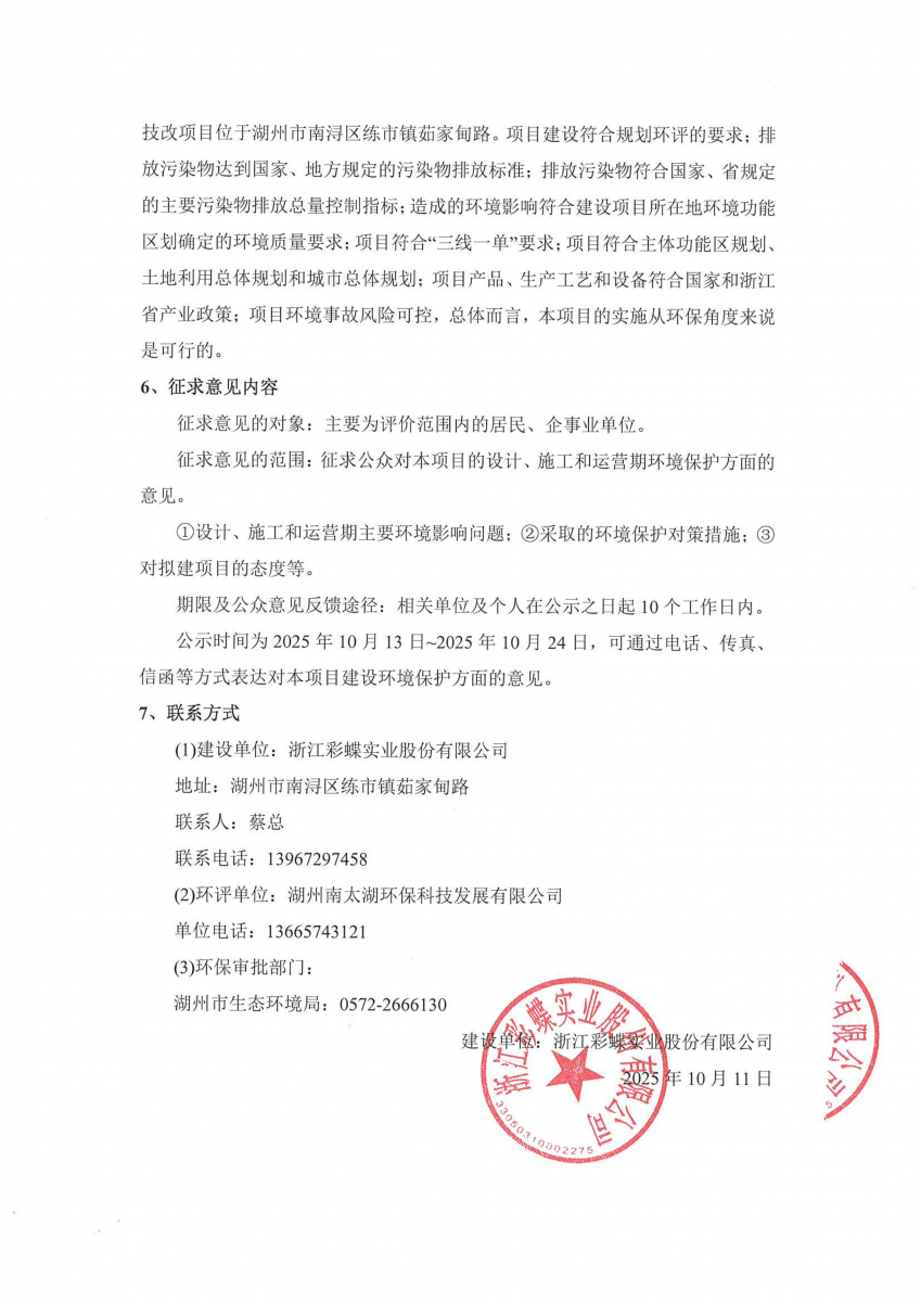 浙江彩蝶實業股份有限公司 地址:湖州市南潯區練市鎮練溪大道999號 郵編:313013 電話:0572-3958999 傳真:0572-3651899 郵箱:sales@chinacaidie.com 網址:www.qvg.net.cn